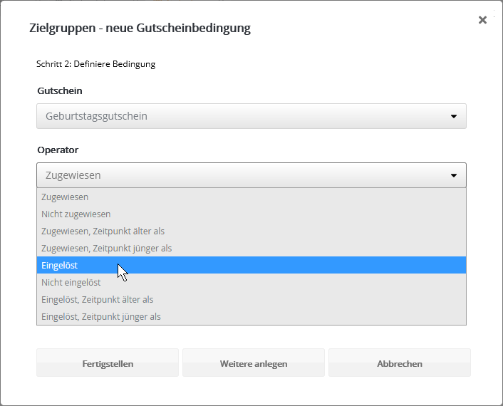 Insbesondere nach dem Kopieren einer vorhandenen Zielgruppe kann das sinnvoll sein, wenn die identischen Abonnenten in Original und Kopie nicht gewünscht sind. Bedingung anhand GutscheinFiltern Sie Abonnenten danach, ob und in welchem Zeitraum die Zuweisung oder Einlösung eines Gutscheins stattfand. Tipp: Um zugewiesene Gutscheine als eingelöst zu markieren, nutzen Sie entweder die Webservice-Funktion 'RedeemVoucherByCode' oder importieren in der Gutscheinübersicht eine CSV-Datei mit den eingelösten Gutscheincodes. Bedingung anhand SelektionMit diesem Bedingungstyp nutzen Sie eine per Webservice angelegte Selektion von Abonnenten als Besser mit Butter-Zielgruppe. Der Bedingungstyp ist nur dann sichtbar, wenn per Webservice mindestens eine Selektion angelegt wurde. Das Besondere: In einer Selektion werden Abonnenten anhand einer Liste von IDs gruppiert. So lässt sich eine extern getroffene Abonnentenauswahl als Zielgruppe nutzen, ohne dass in den Besser mit Butter-Abonnentendaten ein gemeinsames Merkmal vorliegen muss. Die Details entnehmen Sie bitte der Webservice-Dokumentation, die wir Ihnen gern zusenden. Bedingung anhand des Empfängers (geplant)Diese Bedingung entscheidet, ob ein Abonnent als Empfänger eines bestimmten Mailings vorgesehen war oder nicht. Das bedeutet, dass er in einer Abonnentenliste bzw. Zielgruppe für ein bestimmtes Mailing steht, welches versandt wurde. Im Unterschied zur letztgenannten Bedingung wird der tatsächliche Empfang jedoch nicht geprüft. Es sind auch alle Empfänger enthalten, die das Mailing z. B. aufgrund von Bounces, Blacklists oder serversseitigen Spamfiltern nicht empfangen haben. Bedingung anhand des Empfangens (zugestellt)Diese Bedingung entscheidet, ob jemand ein bestimmtes Mailing empfangen hat oder nicht. Das Mailing gilt als empfangen, wenn der E-Mail-Server des Abonnenten eine positive Rückmeldung erteilt hat. Im Schritt nach dem Empfang ist es dennoch möglich, dass das Mailing beim Empfänger in einem Spamordner landet. Bedingung anhand des BounceverhaltensDamit legen Sie Bedingungen anhand der Zustellungen oder Nichtzustellungen eines bestimmten Mailings an. Bedingung anhand Blacklist bzw. Zurückgehaltener AdressenAbonnenten, deren E-Mail-Adresse auf einer Blacklist oder der Liste der zurückgehaltenen Adressen steht, werden automatisch vom Versand ausgeschlossen. Dieselben* Abonnenten lassen sich per Zielgruppe filtern, etwa um sie beim Export Ihrer Abonnentendaten ebenfalls auszuschließen. Die kombinierte Zielgruppe sieht wie folgt aus: