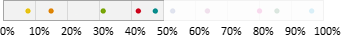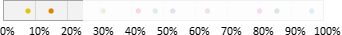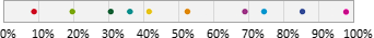 Auswahl-Wahrscheinlichkeit in ProzentGeben Sie einen Prozentwert zwischen 0 und 100% ein. Mit dieser Wahrscheinlichkeit gehört ein Abonnent zur Zielgruppe. Beispielsweise bewirkt ein Wert von 25%, dass ungefähr (siehe Hinweis) ein Viertel aller Abonnenten zur Zielgruppe gehören. Dazu verteilt Besser mit Butter alle Abonnenten auf einem Zahlenstrahl zwischen 0 und 100%. Bei 10 "bunten" Abonnenten könnte eine Variante so aussehen: