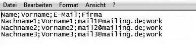 Maybe you have already collected email addresses to which you want to send a newsletter. No matter in which database these information are stored – you only need to save them in a CSV file (for example with Excel) and import them Besser mit Butter. You can pack your CSV file as a zip to accelerate the uploading of large files. That's how it works:In the first line of the table, there should be field names – first name, surname, email address etc. An example: |