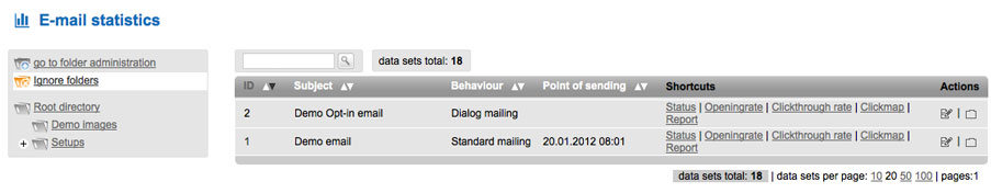 Here you find the statistics of all sent mails. For easier access Besser mit Butter already includes a demo-mail you can view. |